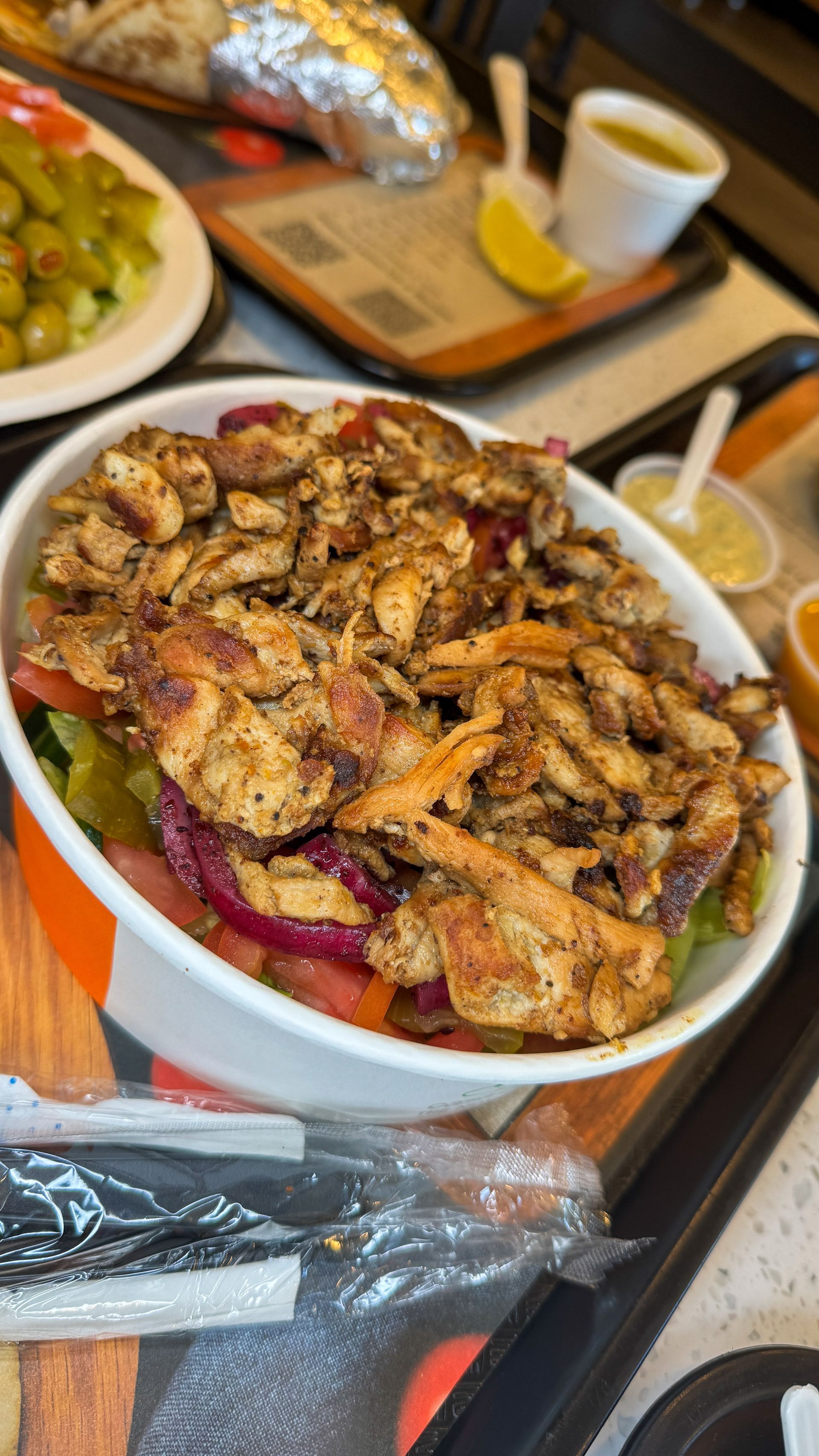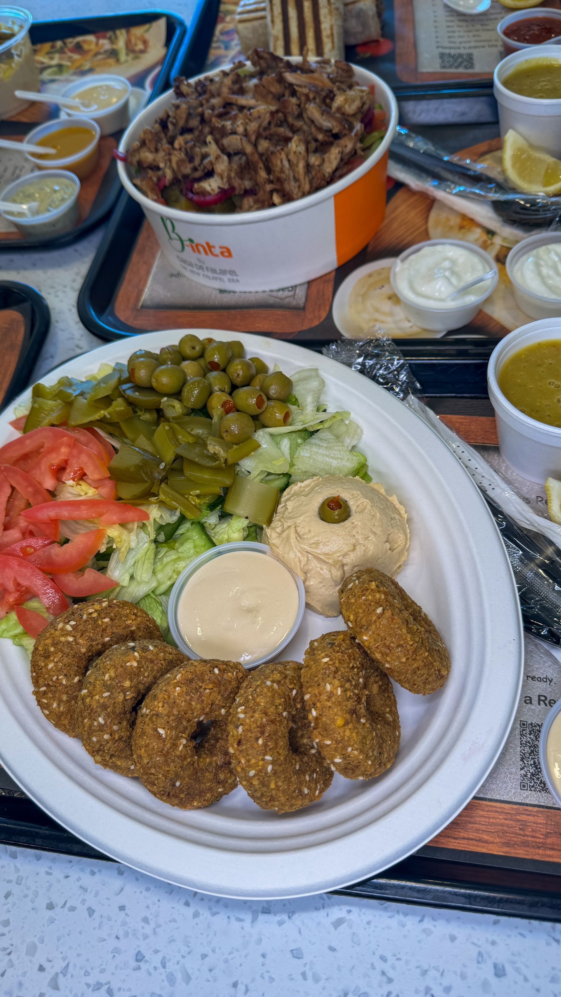 The plates are the most generous and complete option. They usually include your choice of protein, fresh vegetables, rice or fries, falafel rings, sauces, and warm pita. They offer the full experience in one dish. Each plate feels balanced and thoughtfully arranged. The vegetables are crisp. The proteins are seasoned. The sauces tie everything together.
