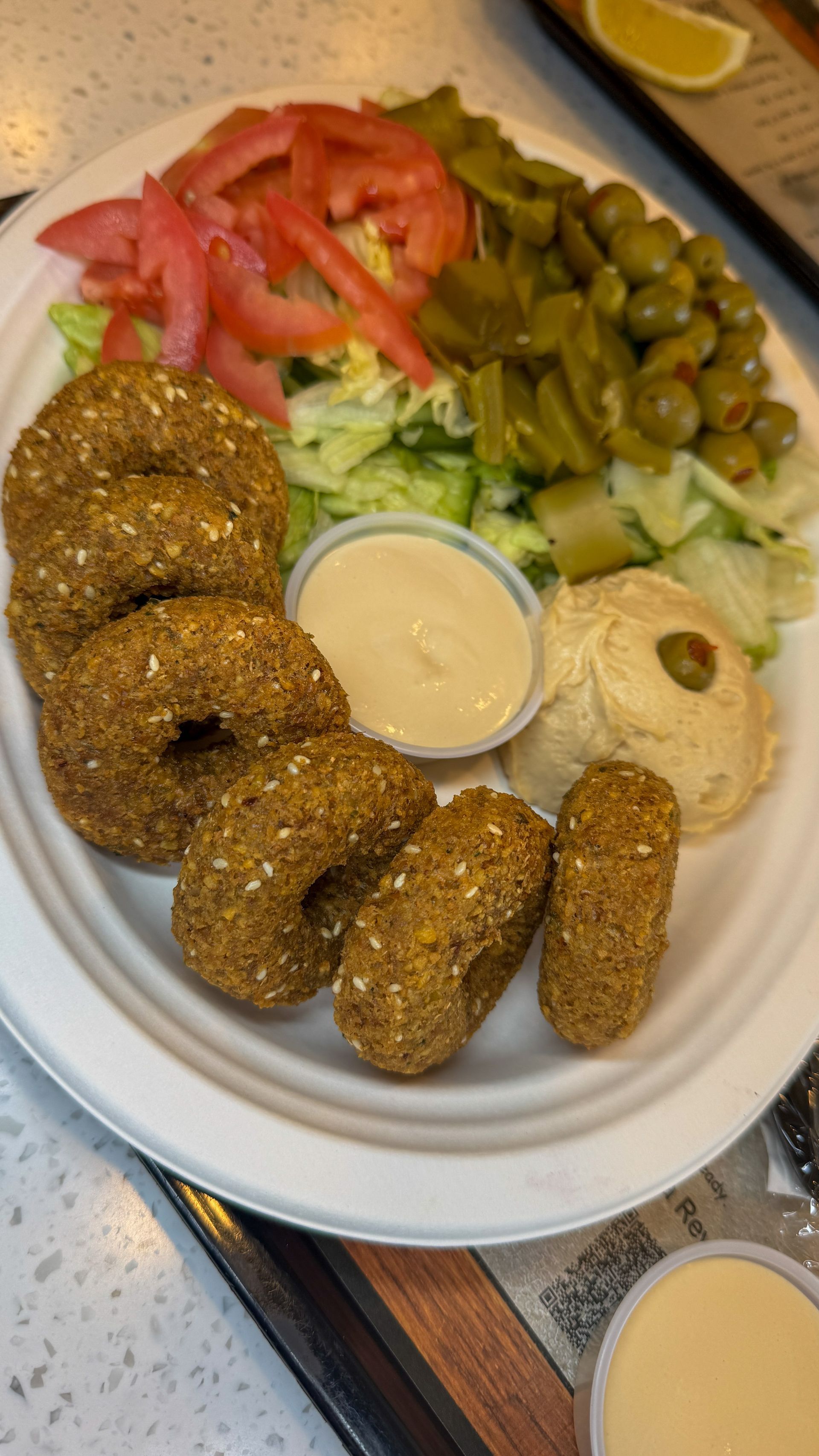 And then there are the falafel rings. They are the signature item that helped put Casa De Falafel on the culinary map, and they represent everything this restaurant stands for. Creative. Thoughtful. Made with care. Impossible to forget. These rings are not the dense falafel balls you see elsewhere. They are shaped in custom molds developed by the restaurant, fried to golden perfection, and known for being light, crispy, and full of bright herb flavor. They became such a sensation that Yelp ranked them number two among the best falafel dishes in the entire United States.