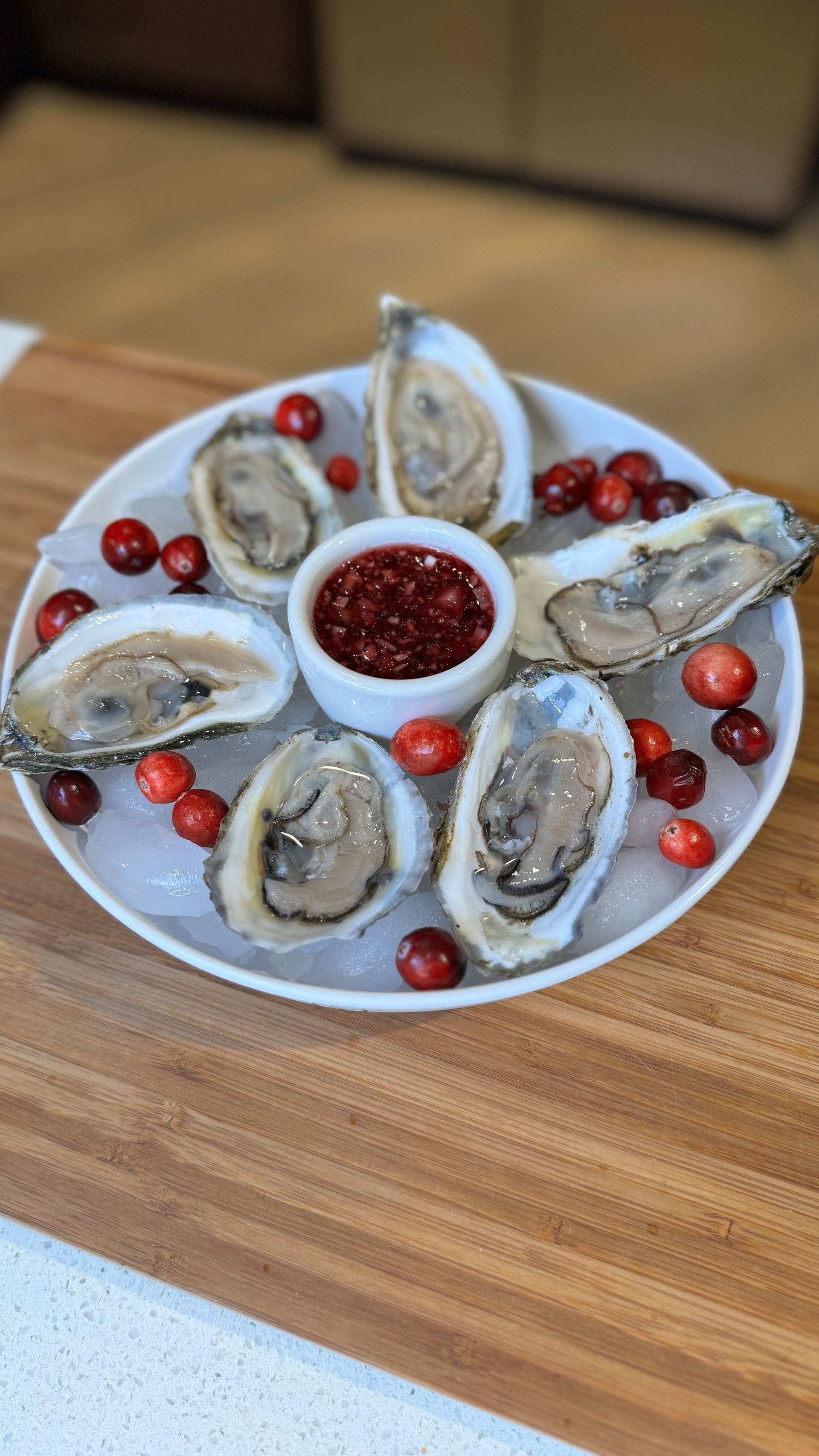 Fresh Oysters with Cranberry Mignonette