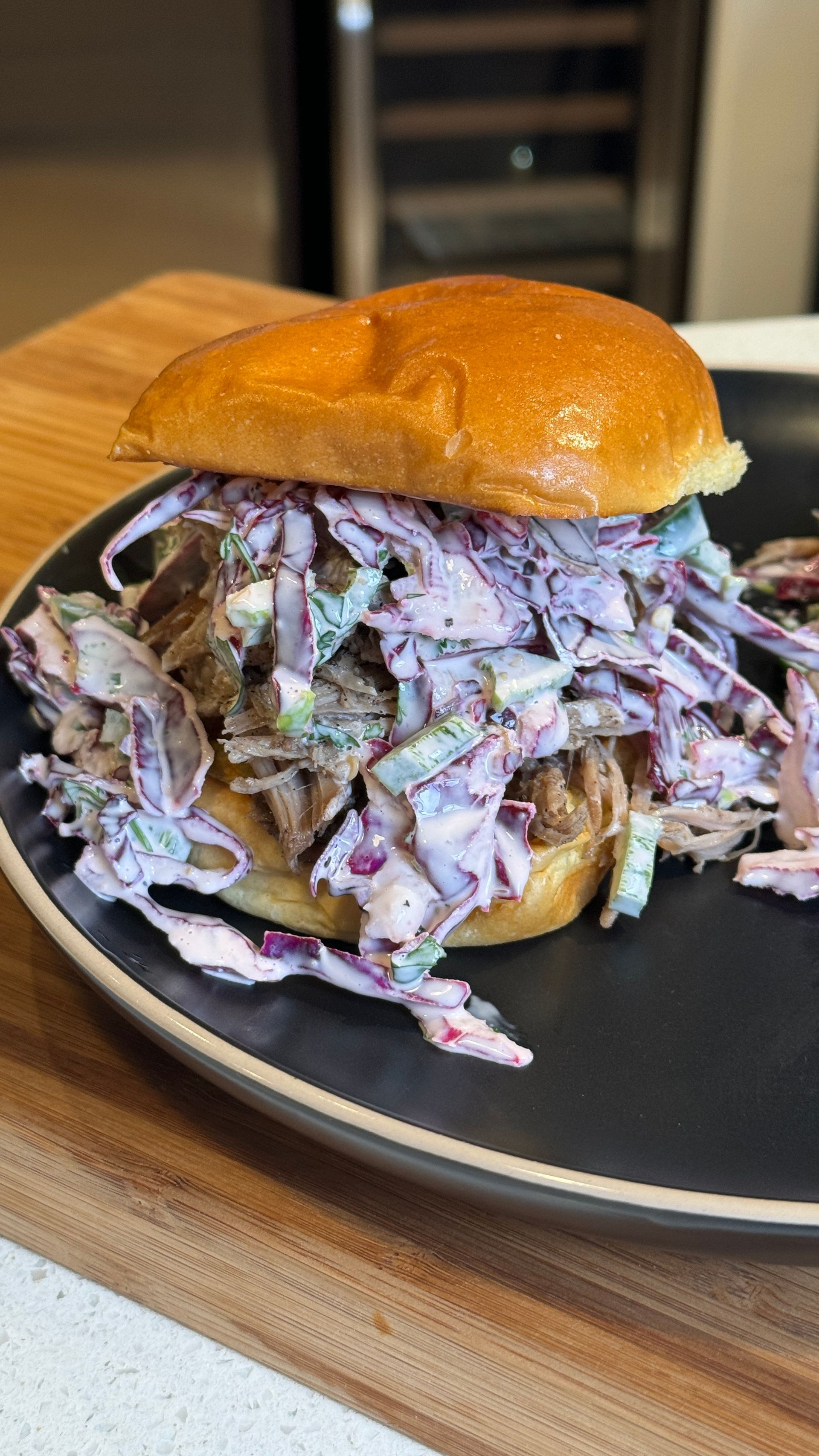 Coffee Pulled Pork Sandwich with Jalapeño Slaw