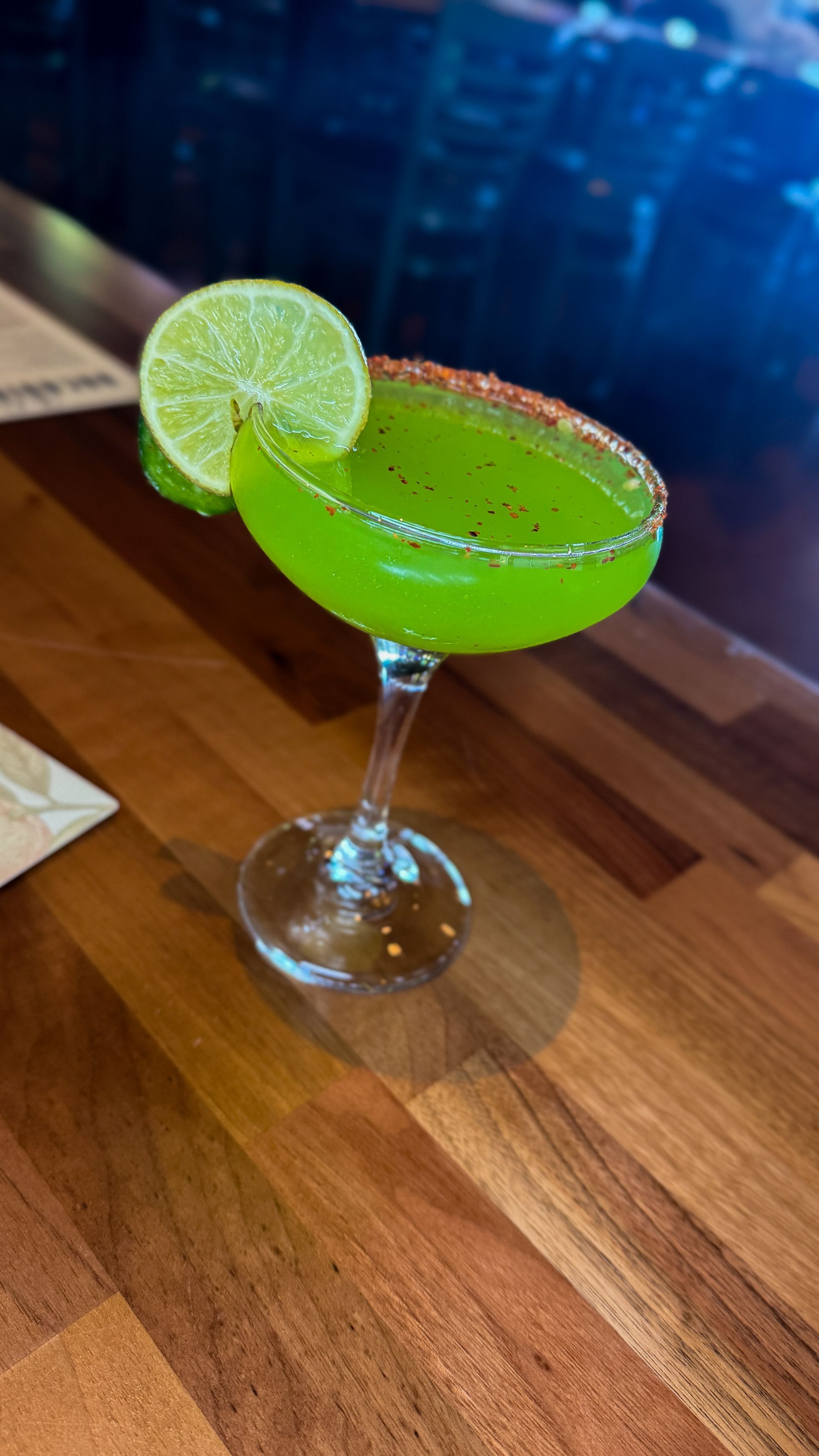 This cocktail blends Don Julio Blanco with melon liqueur, peach liqueur, and lemon juice. It is bright, spicy, refreshing, and layered. The jalapeño heat hits gently, balanced by the sweetness of the peach and the acidity of the lemon.