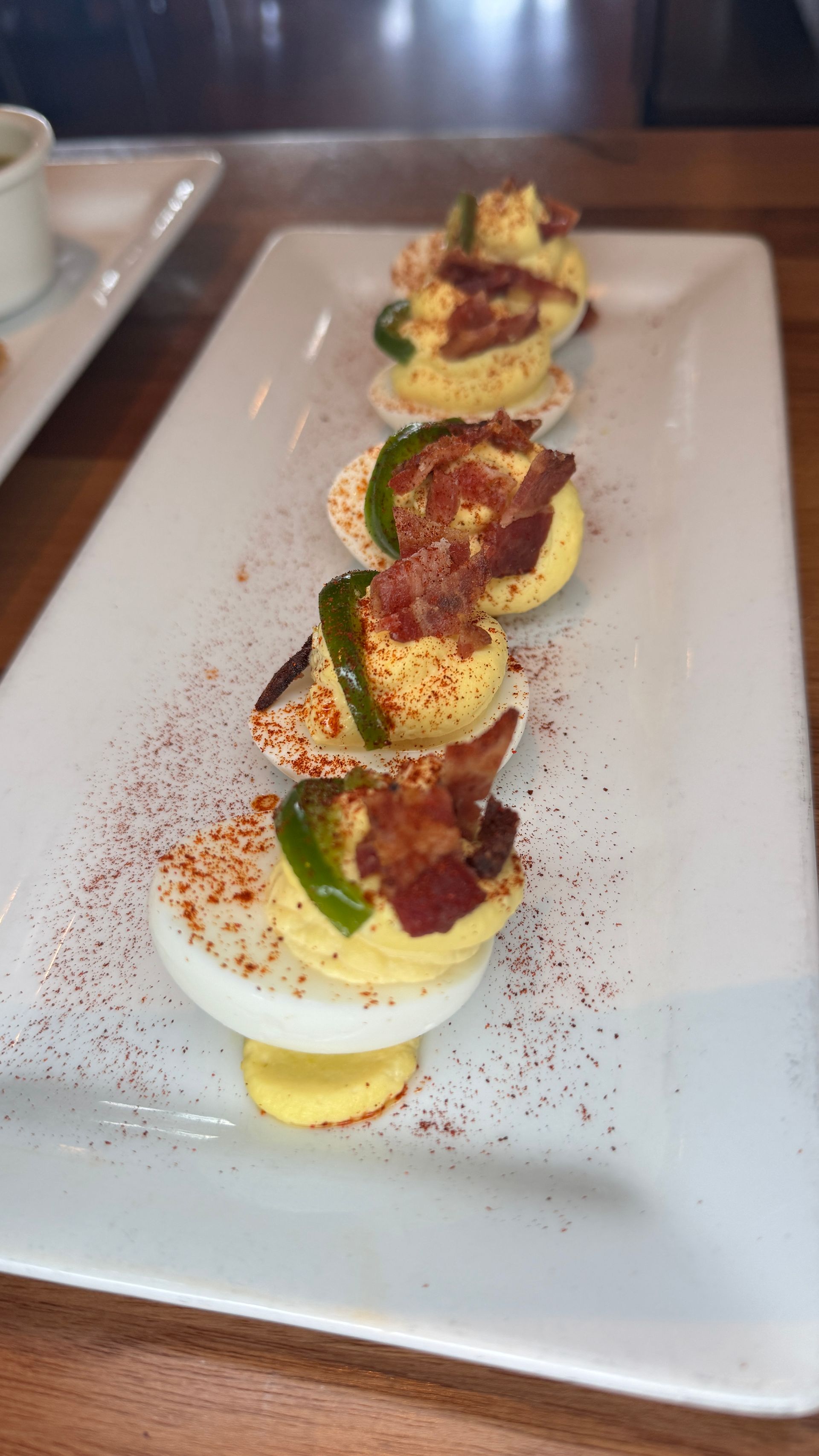 Deviled eggs are a classic appetizer, but Arcadia Tavern gives them a Southwestern twist that makes them memorable. These Sun Deviled Eggs are creamy, rich, and topped with bacon and candied jalapeños, creating a perfect contrast of salty, sweet, spicy, and smoky.