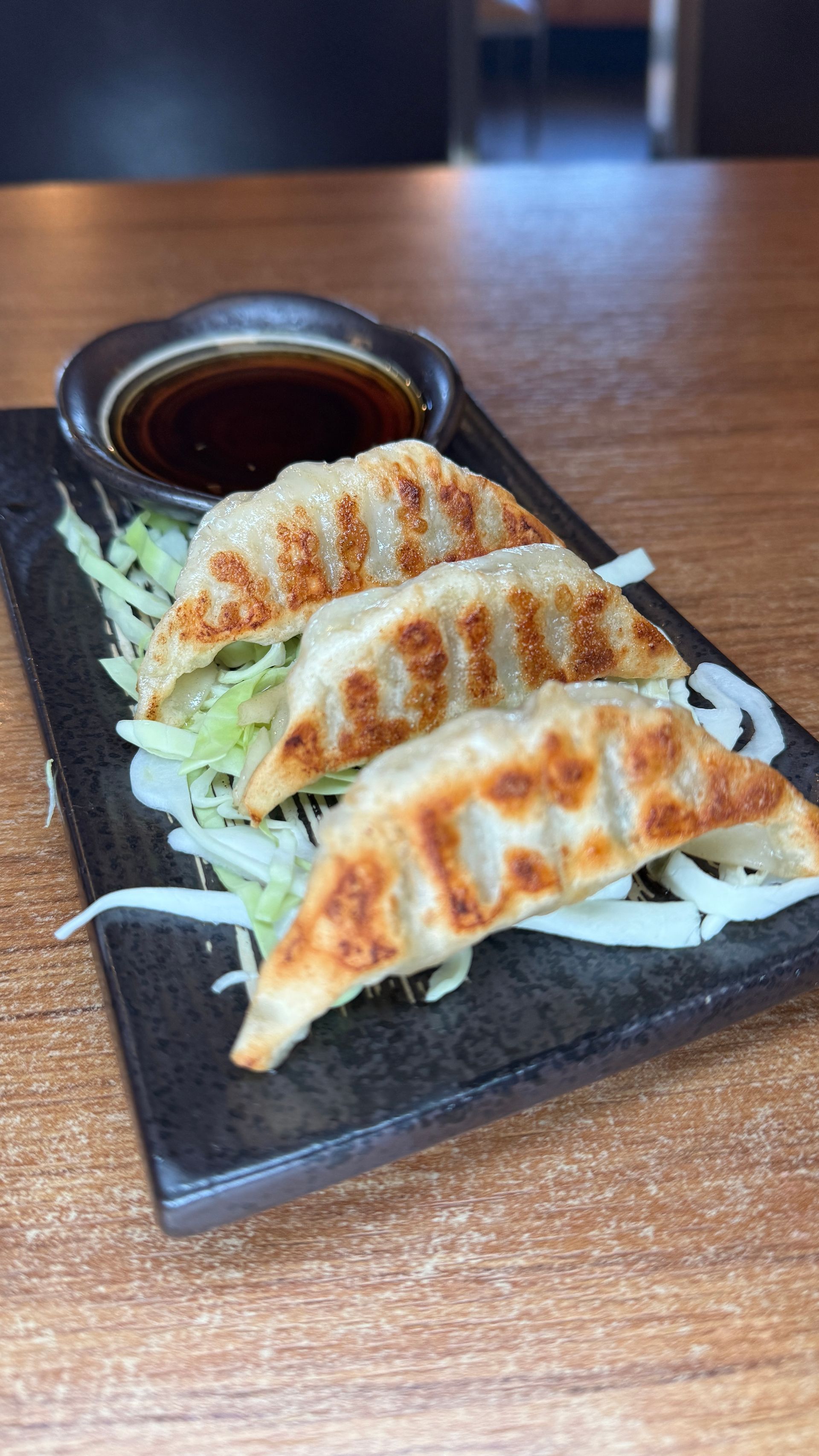 - Gyoza – Golden brown and crispy on the outside, juicy and savory on the inside. Classic, done right.